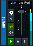 Each audio meter will display green levels when the audio is turned on and blue levels when muted.