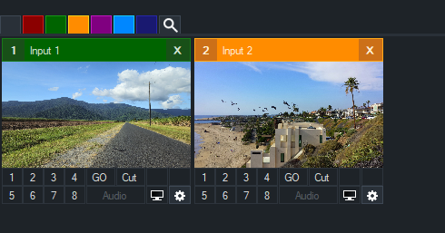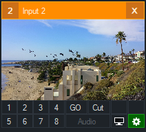 All inputs can be viewed at any time by clicking the left most button. This button is GREY under the default vMix theme.
