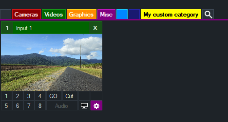 When an Input has been assigned to a particular category, the Input Settings button will be changed to a matching colour.