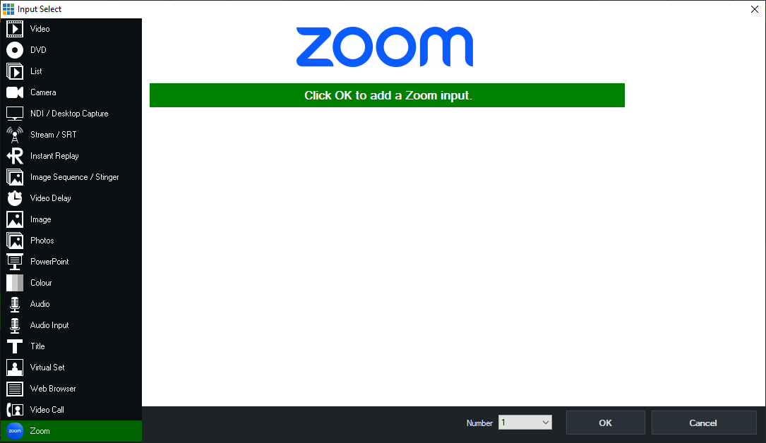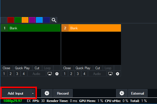 Click Add Input at the bottom left hand corner of vMix to begin adding Zoom into your production.